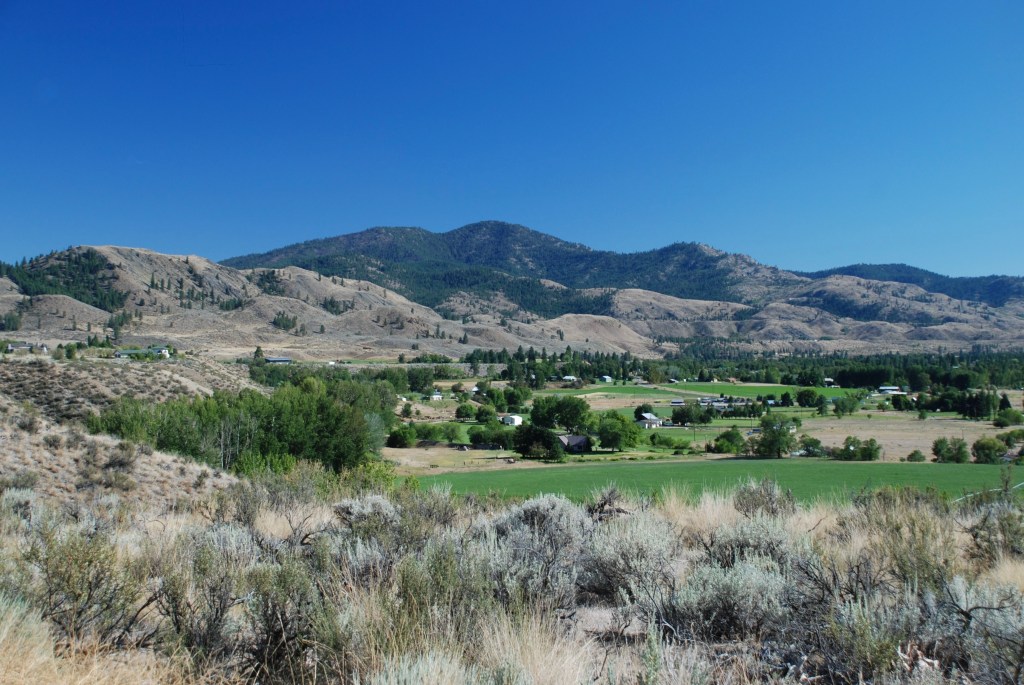 Descending from Washington Pass in the Cascades, I drop into the valley of the Methow River. The Methow tribe, a small, detached band of Okanagan-speaking people, the sp̓aƛ̓mul̓əxʷəxʷ, lived along the river that also bears their name. Then east through a section of Okanogan National Forest and Loup Loup State Forest, the highway enters the sagebrush flats and ranchlands of the Okanogan Valley surrounded by rolling hills.