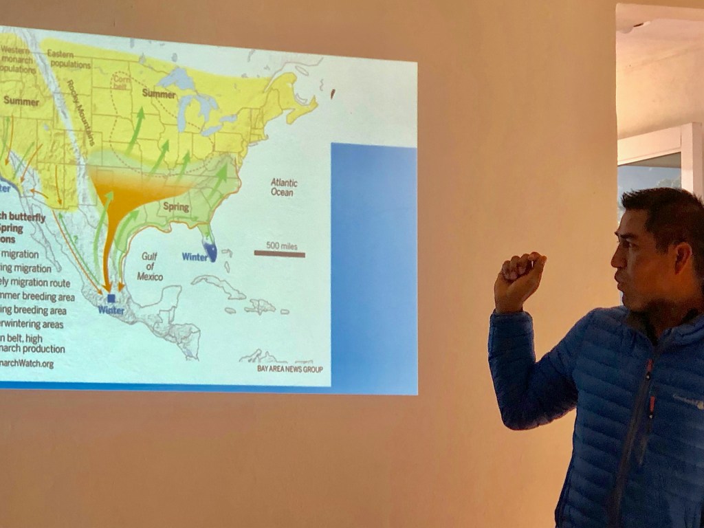 The next morning after breakfast at Dona Rosa’s, we meet for an orientation with Joel and Amy. Joel summarizes the monarch phenomenon before we walk to the sanctuary entrance. “In the fall, nearly the entire North American monarch butterfly population that lives east of the Rockies starts a 3,000-mile journey to our small area of high-altitude tropical forest in Mexico’s trans-volcanic range. Millions of them return to the same trees in the same forest every year.”