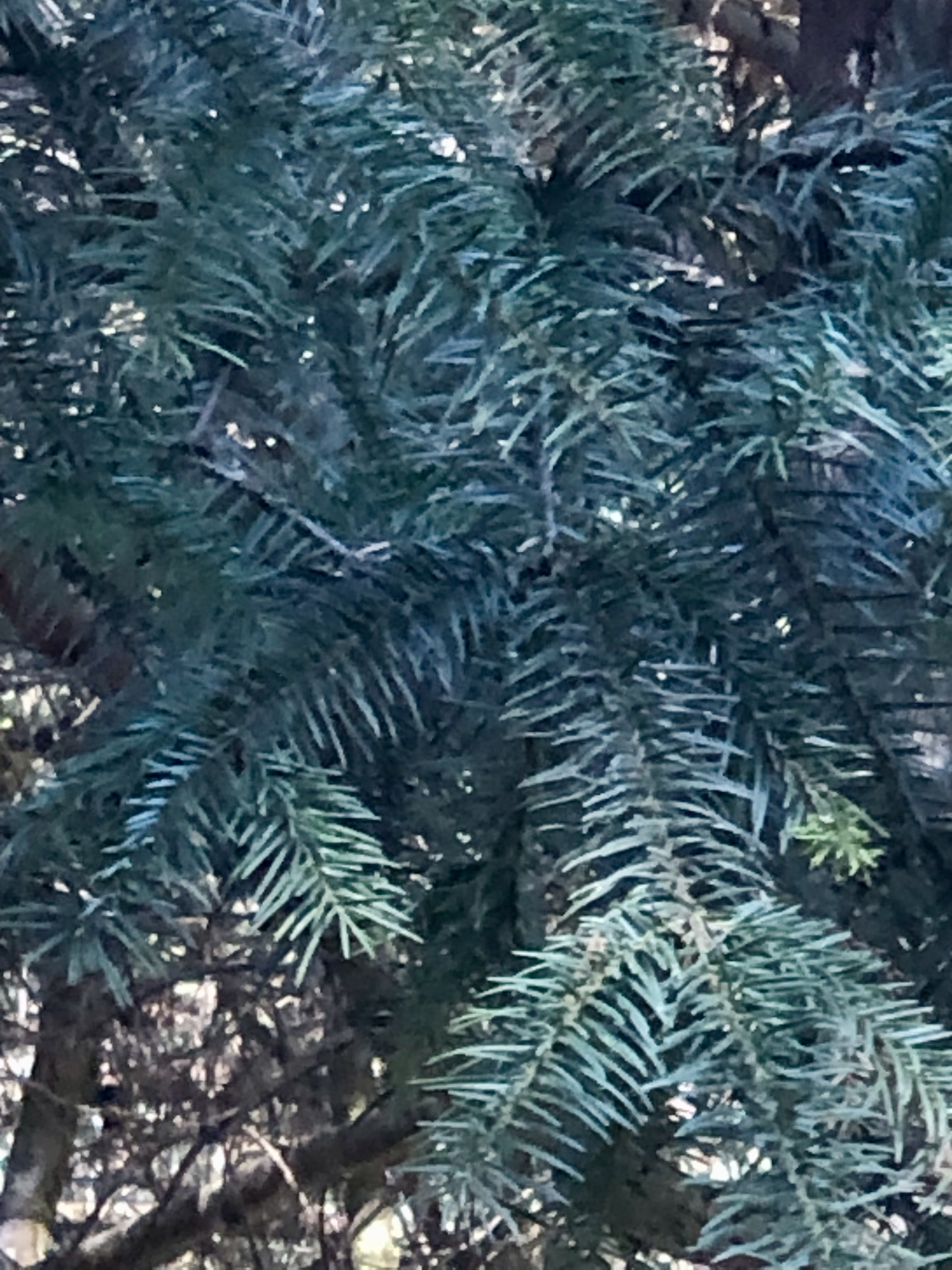 We first notice gatherings of 10, 20, 30 monarchs at a time on flowering plants, numbers that would have astonished us anywhere else. Looking into the forest canopy, I see a hundred or more flitting among the pines and cedars mixed in with the oyamel firs. I reach up to a branch and examine a shoot from an oyamel branch with its blue-green needle-like leaves.
