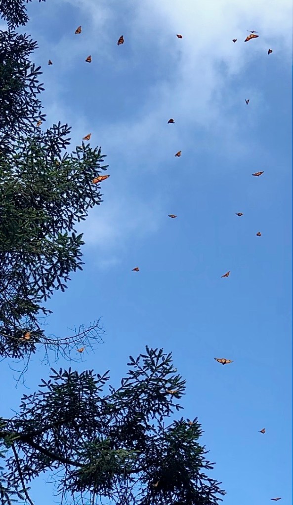 The patrolling guardians from Butterflies & Their People have dramatically reduced the illegal logging simply with their presence. They also maintain the trails, remove trash, and monitor the monarchs. They note the time of the butterflies’ arrival, locate the colonies, and report when the colonies change locations, which can happen on warmer days when the butterflies are more active.