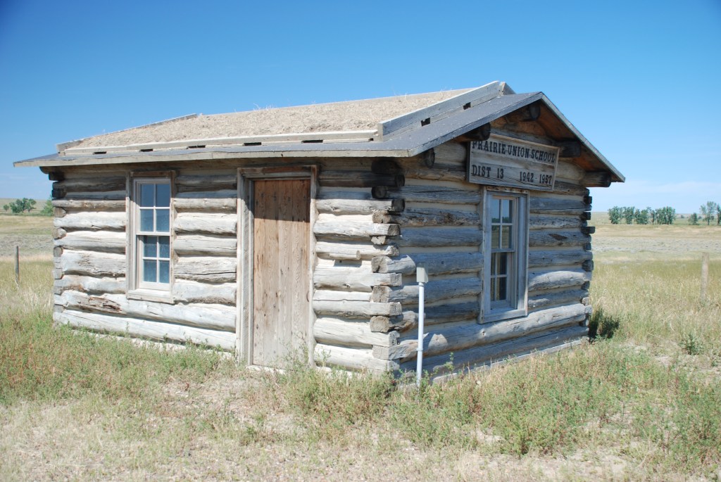 We first stop to have a look at the one-room Prairie Union School, a small log structure built in 1912 that originally served a family homestead. In 1943, the school was moved to a nearby ranch where it offered classes for grades 1-8 and served as a community center. Then in 1948, it was moved to the current location where it continued to operate until 1957. The APR has since renovated the school as a remembrance of education during the pioneering years on the Great Plains.