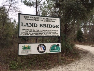 The Land Bridge provides a link in the 110-mile Marjorie Harris Carr Cross Florida Greenway, named to honor the leader of the opposition to a proposed Cross Florida Barge Canal. The idea for a canal arose as early as 1820 when shipping was the primary form of transportation. Not much was done until 1964 when the U.S. Congress appropriated funds to start serious construction, although by then the need for a canal was at best questionable.