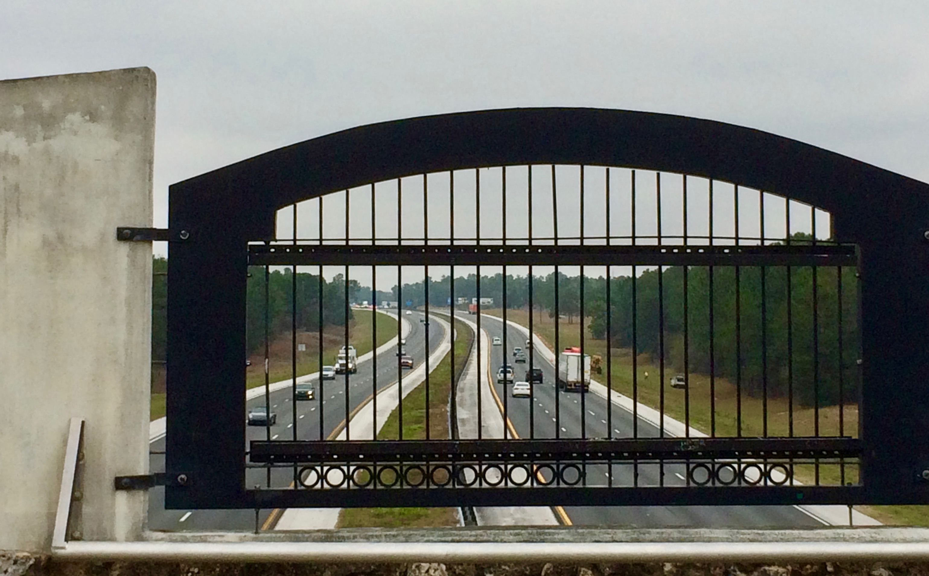 We’re here to see the Land Bridge over I-75, one of the first land bridges in the U.S., constructed in 1999 – 2000 just south of the city of Ocala. Although the impetus for the bridge was to connect trail systems on either side of the interstate, wildlife connection has become equal in importance to its use as a recreational bridge.