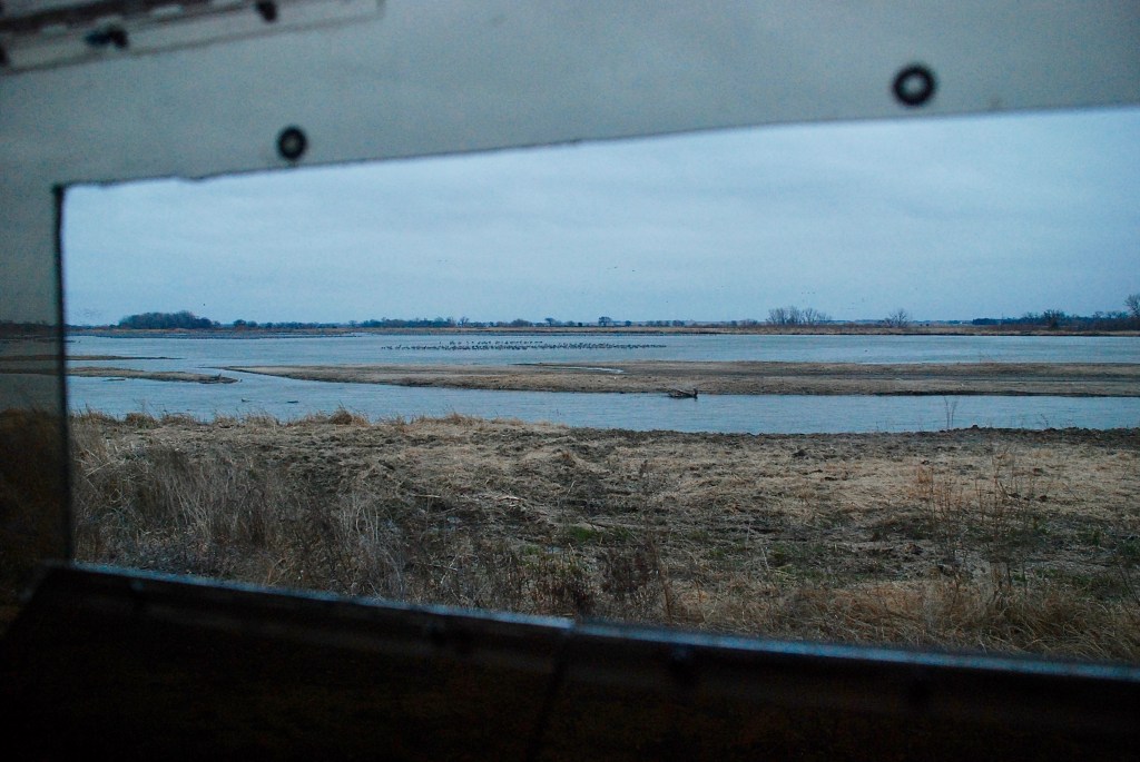 Slowly the night gives way to a gray dawn and we begin to see the silhouettes of cranes. They are not as close to the blind as I had hoped, but I’m sure everyone thinks that no matter how close the cranes may be. As the sky lightens I see that I’m looking at thousands of cranes. A strip of gray on the far side of the river I realize is not shore, but more cranes. A few take to the air, then others follow until a multitude lift to the sky, headed for grain fields.