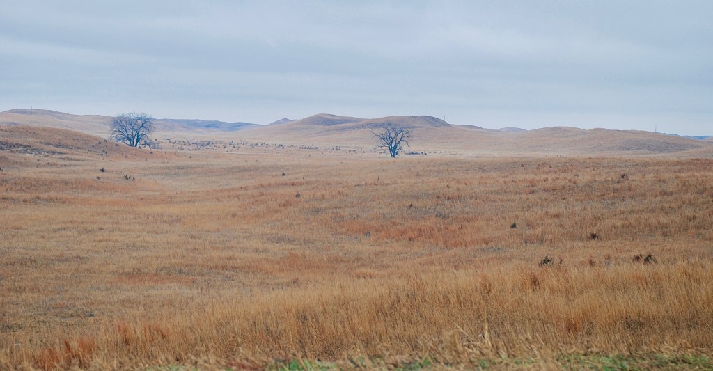 From Grand Island, I head northwest on the Sandhills Journey Scenic Byway (Hwy 2) and enter the Nebraska Sandhills, for which the cranes are named. The Sandhills are grass-stabilized sand dunes covering about 13 million acres of north-central Nebraska, the largest area of grass-covered dunes in the Western Hemisphere. In the 1840s and ‘50s, wagon trains heading west followed the Platte River where it branched off from the Missouri River, which became the preferred way to Oregon and California. As the pioneers ventured up the Platte, they encountered the Nebraska Sandhills that at a distance looked like mountains. But, as A. B. Guthrie, Jr. described the settlers’ encounter in his Pulitzer-prize winning novel, The Way West,