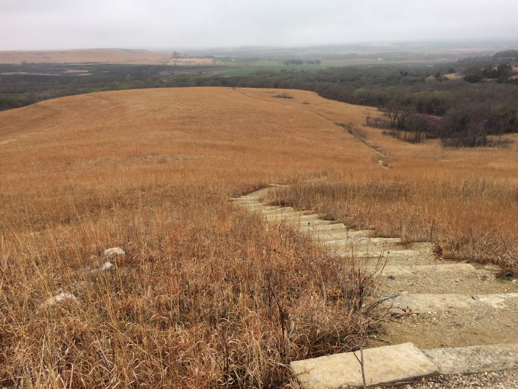 Not far from where I drop below the Nebraska state line, incongruously named Manhattan, Kansas, resides at the northern end of the Flint Hills. Appropriately, the Flint Hills Discovery Center can be found in Manhattan, with exhibits and programs on the Flint Hills and the Tallgrass Prairie. But I’m headed to nearby Konza Prairie. In the early 1970s, The Nature Conservancy was looking to establish a prairie reserve in the Flint Hills. Working with Kansas State University professor Lloyd Hulbert, TNC purchased 916 acres at Konza and coordinated with Kansas State to manage the land. In the late 1970s, another 7,700 acres was added, and the preserve was named the “Konza Prairie Biological Research Station” where scientists study the role of fire, grazing, and climate change on grasslands.