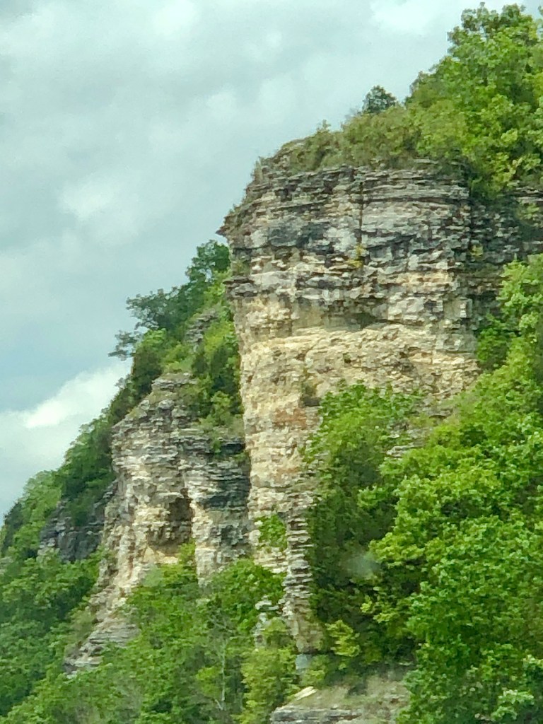 The next day, I cross a high bridge over the Mississippi River into the southern projecting panhandle of Missouri and head north along the river. Two driving routes, one on each side of the river, have been designated the Great River Road passing through ten states. The routes are signed with the image of a riverboat steering wheel, or helm. At 3,000 miles, this is America’s longest National Scenic Byway.