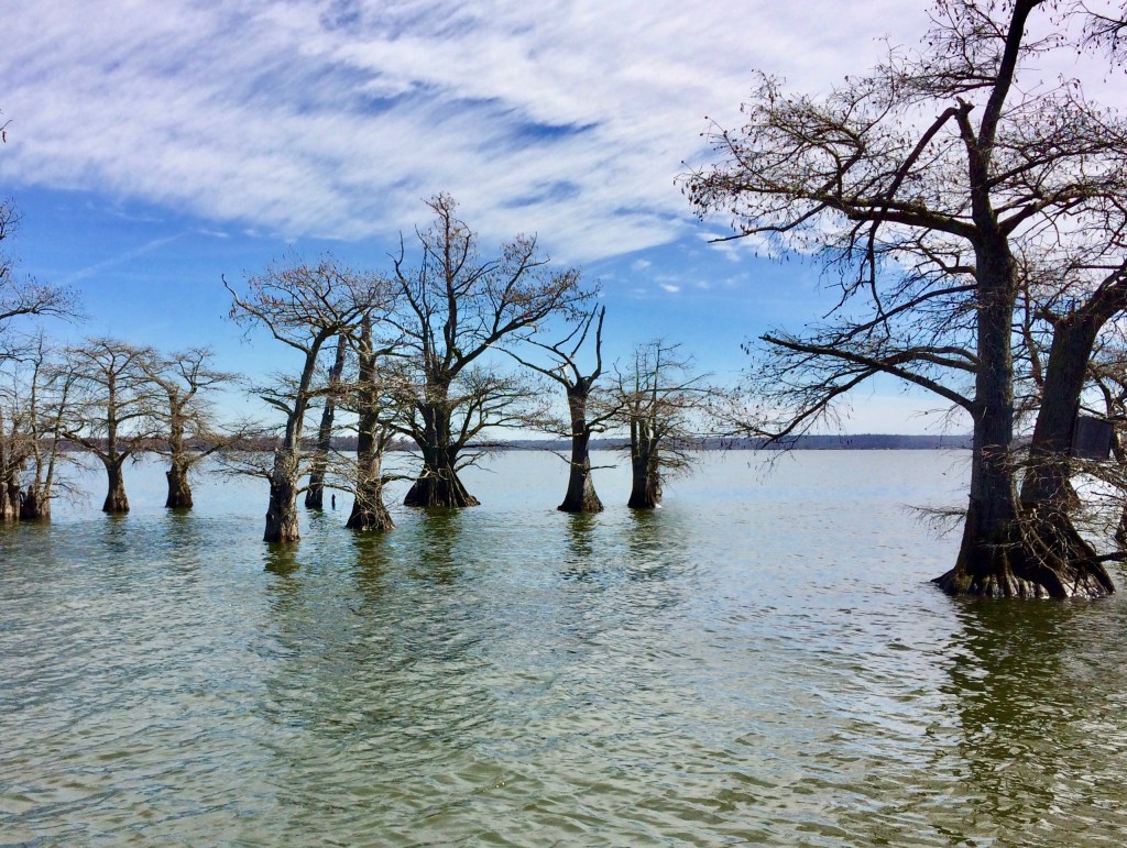 It’s suddenly like being in another state or another country. Driving across the flatlands of west Tennessee with cotton and grain fields stretching to the horizon, I abruptly come upon cypress trees standing in the waters of Reelfoot Lake.